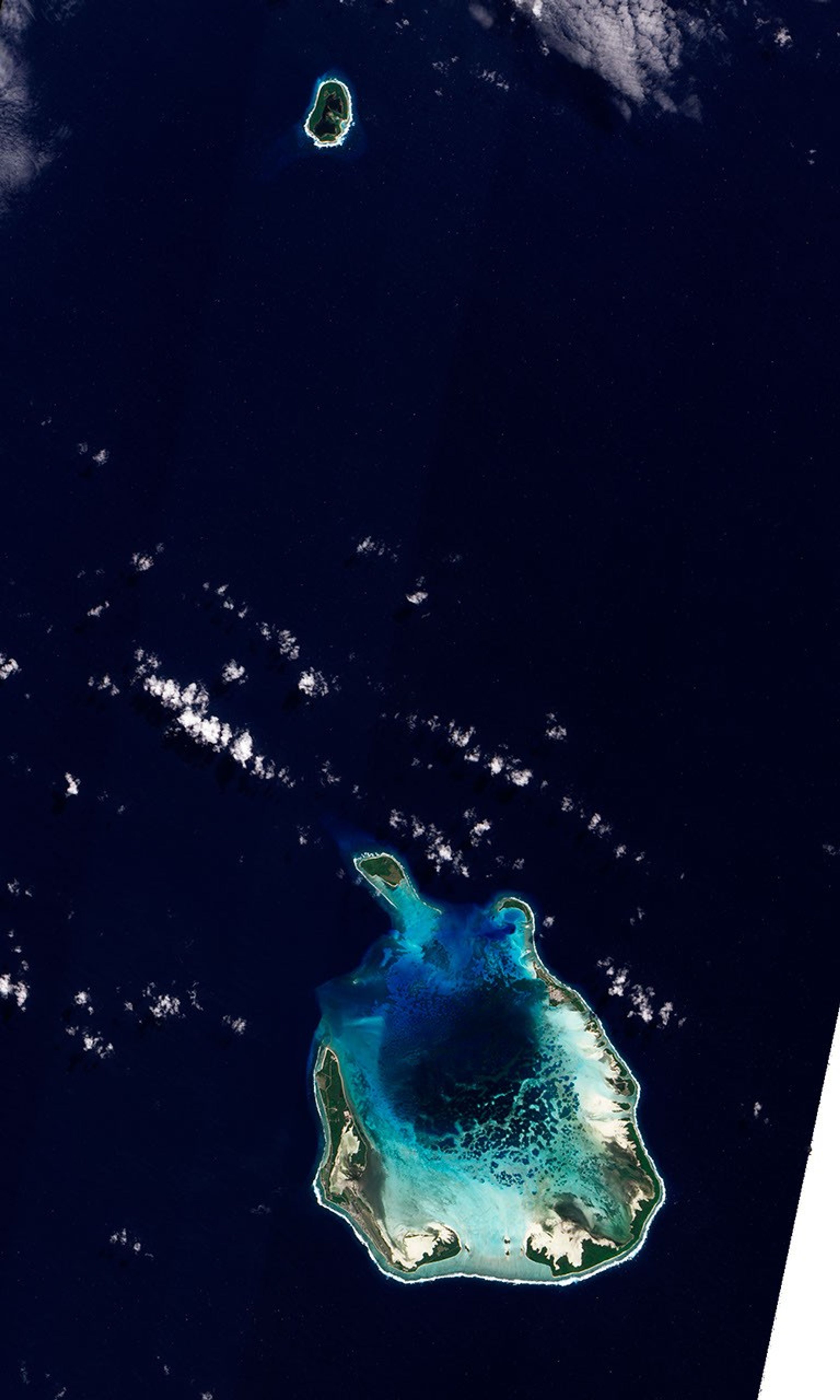 The Cocos (Keeling) Islands lie in the eastern Indian Ocean, about 2,900 kilometers (1,800 miles) northwest of the Australian city of Perth. Comprised of coral atolls and islands, the archipelago includes North Keeling Island and the South Keeling Islands. The Advanced Land Imager (ALI) on NASA’s Earth Observing-1 (EO-1) satellite captured this natural-color image of South Keeling Islands on July 31, 2009.