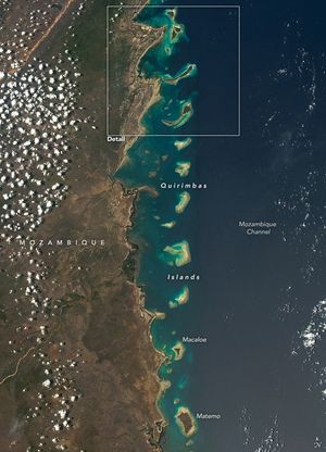 The island group off mainland Mozambique is a dynamic marine and island ecosystem shaped by tides and currents.