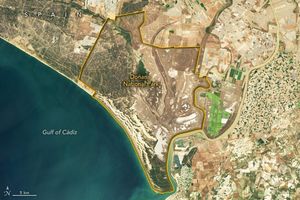 Amid prolonged drought, wet spring weather flooded marshes and greened vegetation in southern Spain.