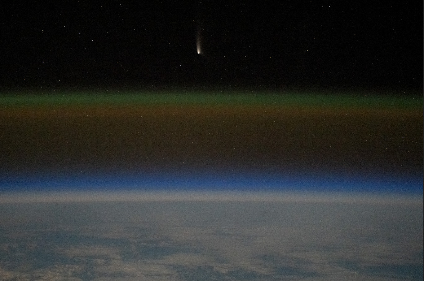 Crew aboard the International Space Station have also been observing Tsuchinshan-ATLAS on its journey through the inner solar system. An astronaut captured this photo of the comet on September 19, 2024. At that time, the mass of dust, ice, and rock was approaching the closest point to the Sun on its highly elliptical orbit. The photo also offers a cross-section view of Earth’s bright horizon, or limb, and the planet’s colorful atmospheric layers.