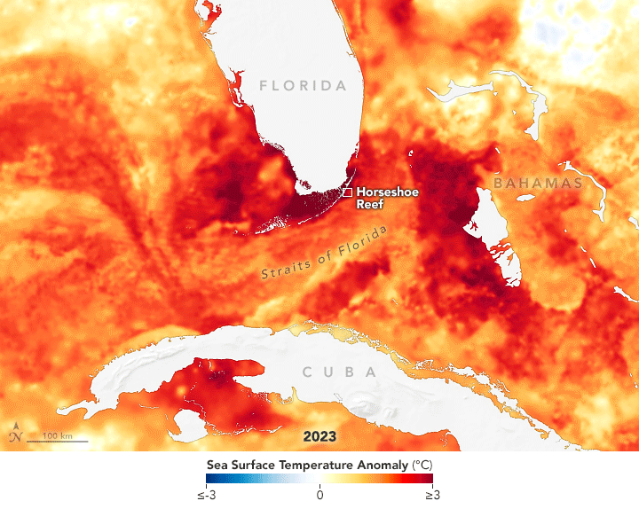 Summer 2023, a period with record-high water temperatures, further damaged the reef. The Straits of Florida faced water temperatures of 87 degrees Fahrenheit (31 degrees Celsius) and above as early as mid-June, and they remained, in many places, above that level into October. In some areas, temperatures occasionally soared above 93°F.