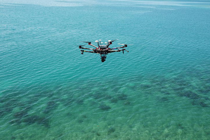 When NOAA invited Chirayath to bring his drone and fluid lensing technology to the Florida Keys to help monitor the reef amid surging temperatures in 2023, he jumped at the opportunity. Chirayath acquired the images at the top of this page with a high-performance digital camera (FluidCam) mounted on a drone and processed them with the fluid lensing technique.