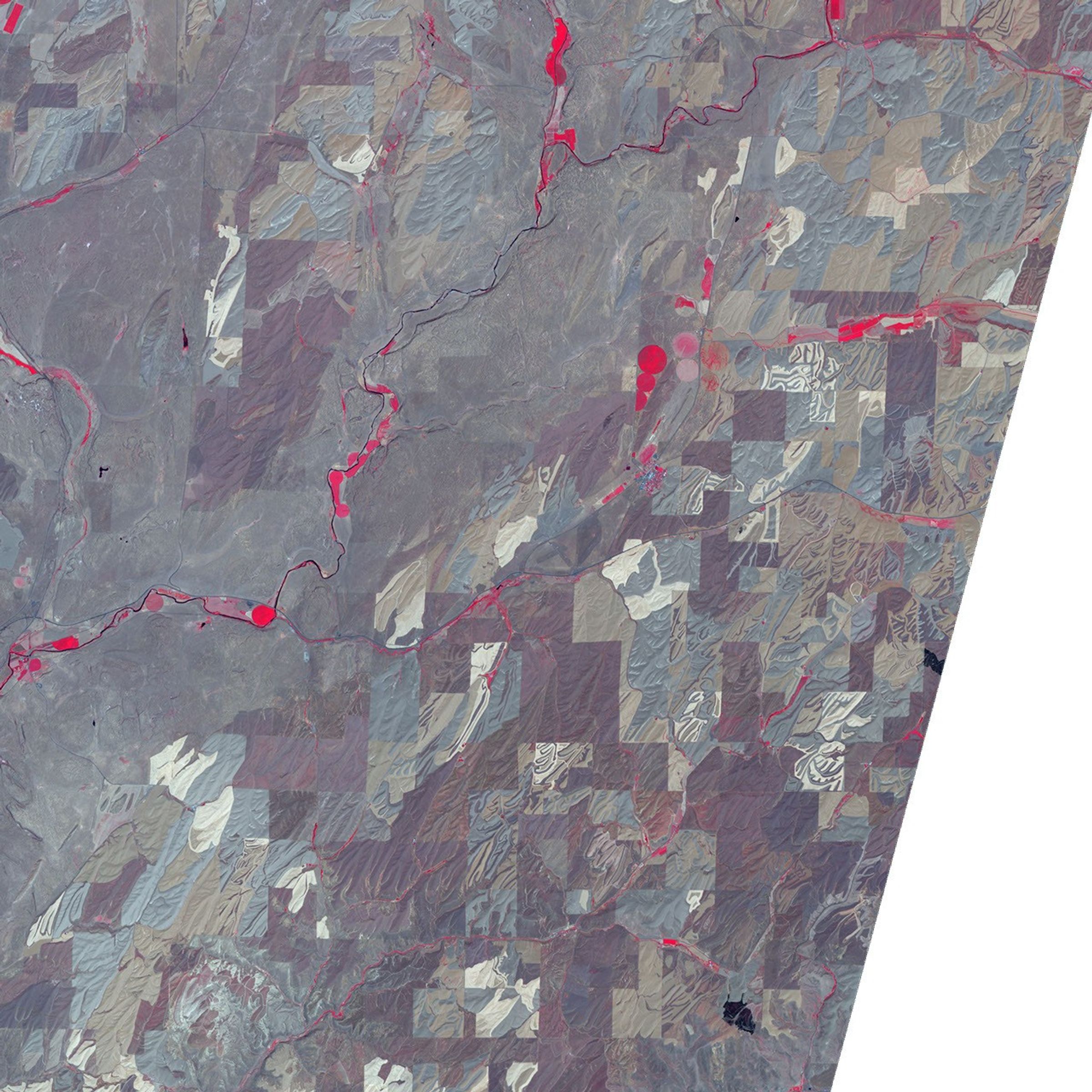 The Advanced Spaceborne Thermal Emission and Reflection Radiometer (ASTER) on NASA’s Terra satellite captured this image of farmland near LaCrosse, Washington, on July 24, 2008. The false-color image was assembled using infrared, red, and green wavelengths of light. This combination is useful for observing vegetation and monitoring its health. Areas with the most vigorous crops, grasses, and trees are bright red. Areas where vegetation is drying or dormant are darker shades of brown and gray. Areas with no red are likely fallow or being prepared for seeding.