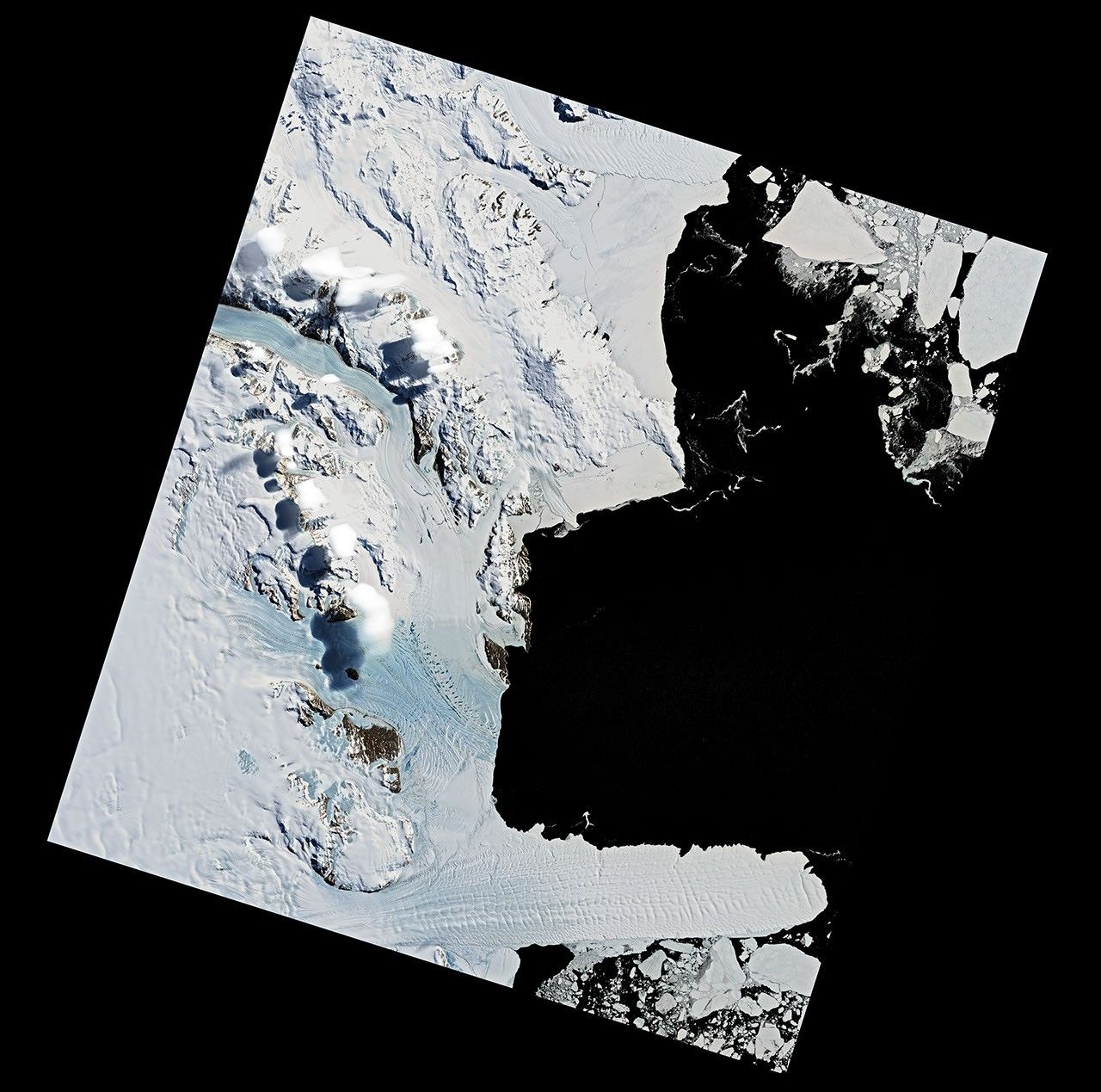 On December 29, 2020, the Operational Land Imager (OLI) on Landsat 8 acquired these images of soft-edged clouds hovering over the Eisenhower Range of Antarctica’s Transantarctic Mountains. The range is bounded to the north by Priestley Glacier and to the south by Reeves Glacier, both of which feed into the Nansen Ice Shelf on Terra Nova Bay.