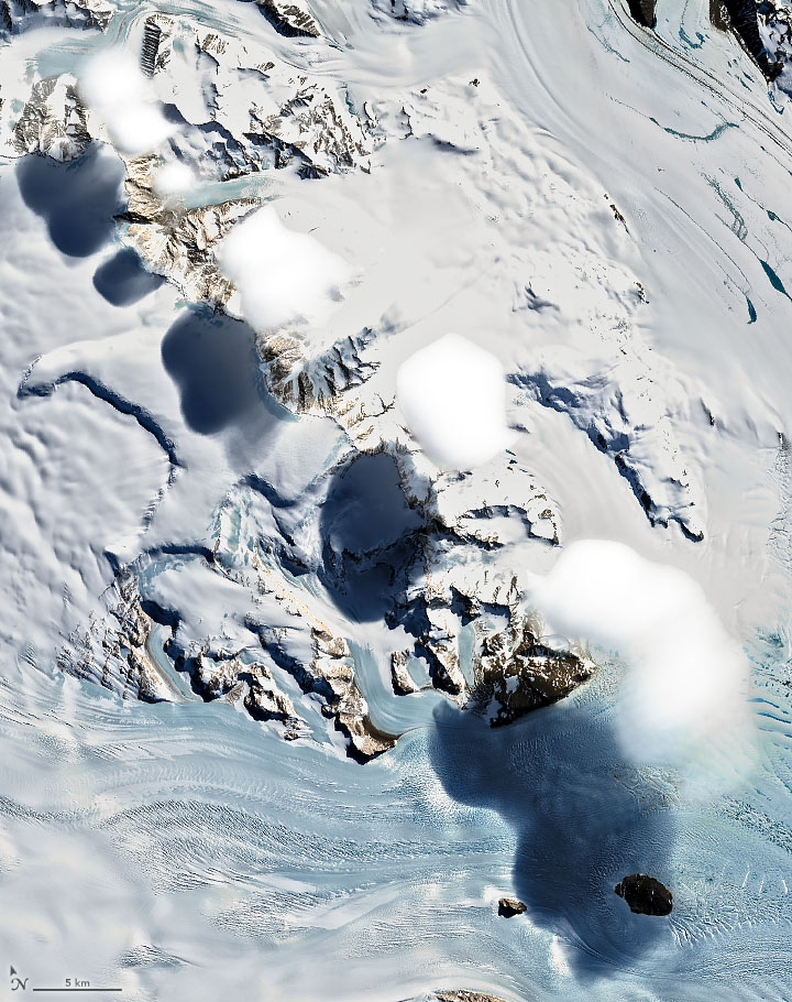 NASA Earth Observatory images by Joshua Stevens, using Landsat data from the U.S. Geological Survey. Story by Kathryn Hansen with image interpretation by Bastiaan Van Diedenhoven (NASA GISS/Columbia) and Jan Lenaerts (CU Boulder).
