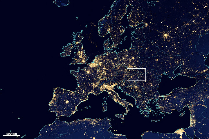 NASA Earth Observatory images by Robert Simmon and Jesse Allen, using Suomi NPP VIIRS data provided courtesy of Chris Elvidge (NOAA National Geophysical Data Center ). Suomi NPP is the result of a partnership between NASA, NOAA, and the Department of Defense. Caption by Kathryn Hansen.