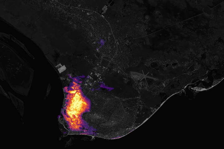 NASA Earth Observatory images by Joshua Stevens, using Black Marble data courtesy of Ranjay Shrestha/NASA Goddard Space Flight Center, Landsat data from the U.S. Geological Survey, and iMERG data from the Global Precipitation Mission (GPM) at NASA/GSFC. Story by Kasha Patel.