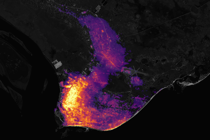 NASA Earth Observatory images by Joshua Stevens, using Black Marble data courtesy of Ranjay Shrestha/NASA Goddard Space Flight Center, Landsat data from the U.S. Geological Survey, and iMERG data from the Global Precipitation Mission (GPM) at NASA/GSFC. Story by Kasha Patel.