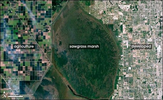 In 2004, Curtis Marshall (a former student of Pielke’s), Pielke himself, and their colleagues Louis Steyaert and Debra Willard published two papers in which they demonstrate how the transformation of Florida’s wetland ecosystems in the last century may have changed the state’s climate in unexpected ways. Using present-day land cover based on Landsat satellite data, historical documents and vegetation maps, and the types of pollen found in deep soil samples, the team meticulously reconstructed how the landscape has changed in the last century. Then they used a regional climate model to compare the climate that exists with the climate that might have existed if the natural landscape had remained undisturbed.