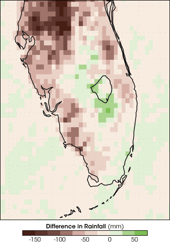For all three time periods, the team discovered significant differences in the intensity and location of precipitation when the pre-1900 land cover was replaced with the present-day land cover. South of the latitude of Tampa, two roughly parallel strips of decreased rainfall ran north to south on either side of the heart of the peninsula. Rainfall increased somewhat in a strip down the center of the state. When averaged across the region, the modeled rainfall totals for all three periods were 10-12 percent less with the present-day land cover than they would have been with the pre-1900 land cover.