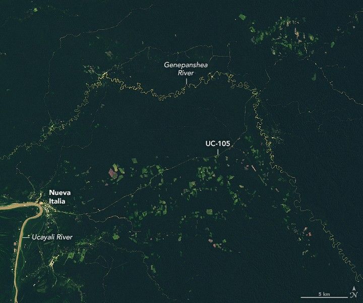 NASA Earth Observatory images by Lauren Dauphin, using Landsat data from the U.S. Geological Survey . Photo by William Villacorta/Upper Amazon Conservancy. Story by Adam Voiland .