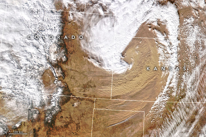 In Colorado, wind gusts exceeded 100 miles (160 kilometers) per hour and dust storms swirled in the southeastern part of the state and in western Kansas. Snow and rain showers, along with at least 20 tornadoes, were reported along the squall line.