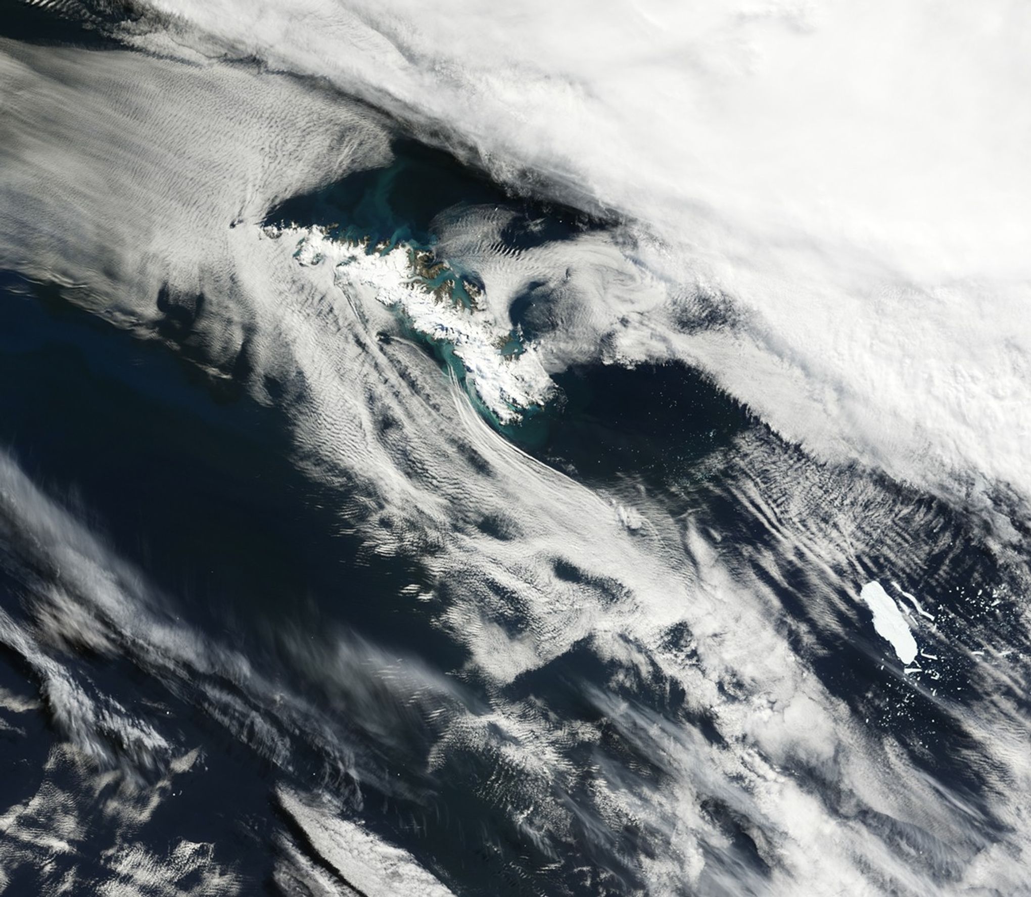 In April 2005, the A53a iceberg calved off the Larsen Ice Shelf on the Antarctic Peninsula and began drifting north. As it headed north, the iceberg encountered warmer temperatures and, nearly three years later, began to disintegrate. Observing such iceberg disintegration can help scientists studying Antarctica’s ice shelves better understand how those shelves change in response to warmer temperatures.