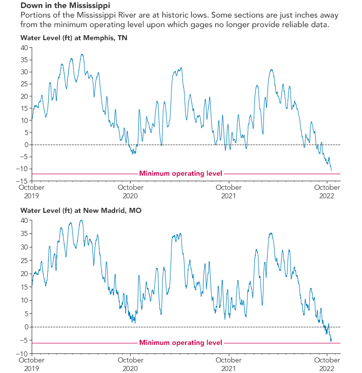 - The Maritime Executive (2022, October 6) Lower Mississippi Closed in Two Places Due to Low Water and Groundings. Accessed October 20, 2022.