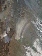 In early September 2011, dust plumes blew northward from Argentina’s Laguna Mar Chiquita. The Moderate Resolution Imaging Spectroradiometer (MODIS) on NASA’s Aqua satellite captured this natural-color image on September 4, 2011.