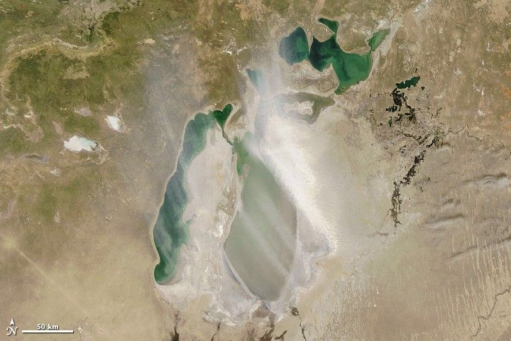 Human activity has disturbed the deserts well beyond North America. The Himalayas get regular dustings from the Thar Desert along the India-Pakistan border, which witnessed an expansion of human activity in the 1800s. Further north, the Soviet Union diverted water from the Aral Sea, and now it’s a huge dust producer affecting the Tien Shan mountain range. Land practices over the past 30 years in Afghanistan have made that land a tremendous dust producer, as well.