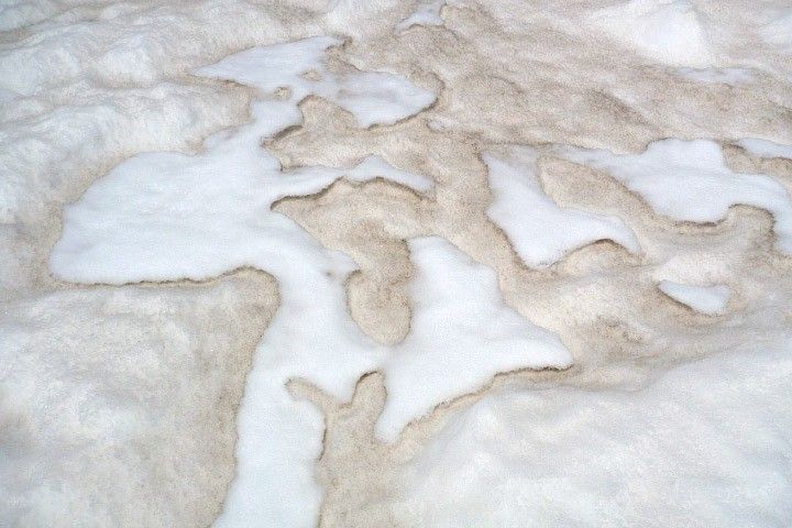 Dirty snow usually melts faster than fresh snow because it absorbs more energy from the Sun, and that’s not just a problem in sooty, gritty cities. Except for some mountains and high plateaus, snow cover naturally retreats from Earth’s surface in the spring and early summer. Dust on top of that snow significantly accelerates the process.