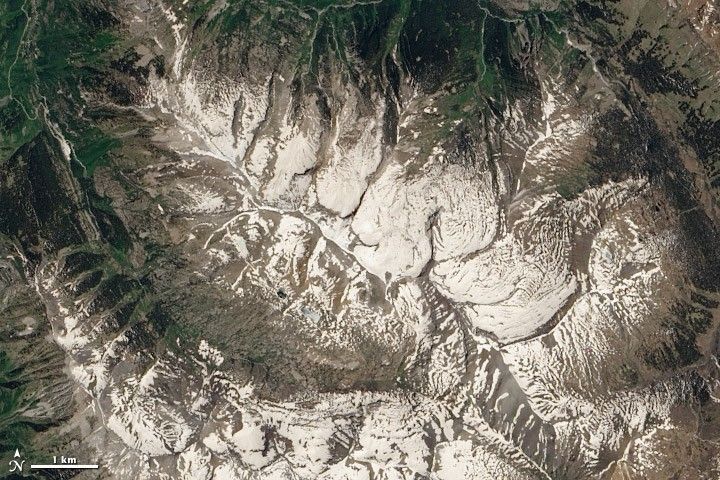 “Increasing the dust load peels that insulation back earlier in the year,” Painter adds. “Once you peel the snow cover back, the energy can go into the glacier and start melting.”