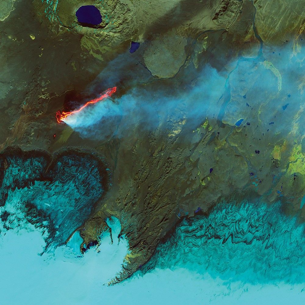 As an island in the moist, turbulent North Atlantic, Iceland is often shrouded in clouds and difficult to observe from space. In 2014, the island started making some of its own cloud cover, as the Earth split open between the Bárðarbunga and Askja volcanoes and spewed lava and hot gas.