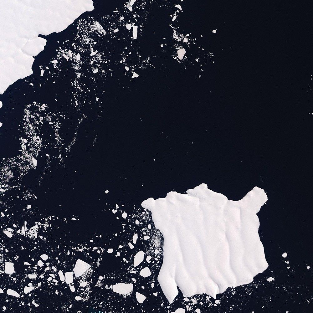 Deep cracks, or crevasses, give the glacier tongue a rough and rugged texture, which carried over to this rippled iceberg. Such ice is often swept up by ocean currents circling Antarctica, and icebergs can remain relatively intact for months or years, so long as they remain in sufficiently cool conditions. Some icebergs, however, drift northward to warmer climates and disintegrate. By observing the response of an iceberg to warmer conditions, scientists can make predictions about how ice shelves—thick slabs of ice attached to coastlines—might respond to a warming climate.