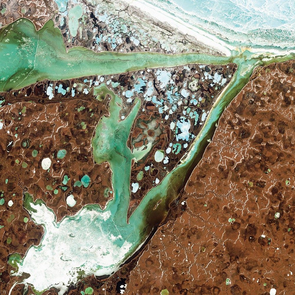 Along the northern Siberian coast, near Omulyakhskaya and Khromskaya Bays, the landscape is dotted with lakes. Known as thermokarst lakes, these pools are made from the thawing of frozen soil, or permafrost, and the accumulation of that melt water in low spots in the terrain.