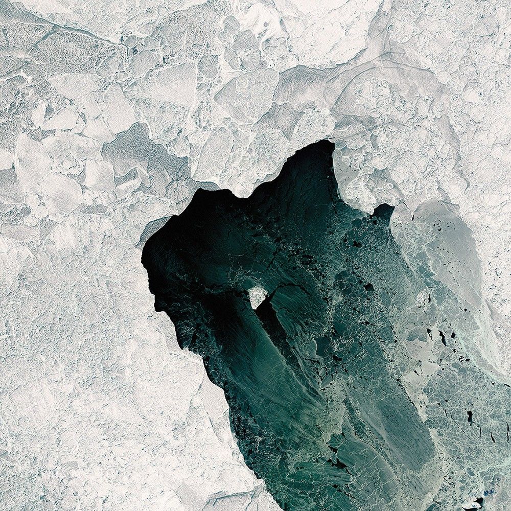 The ice here tends to move with currents and eddies, which has shaped it into rough circles. The eddies may result from opposing winds from the north and southwest.