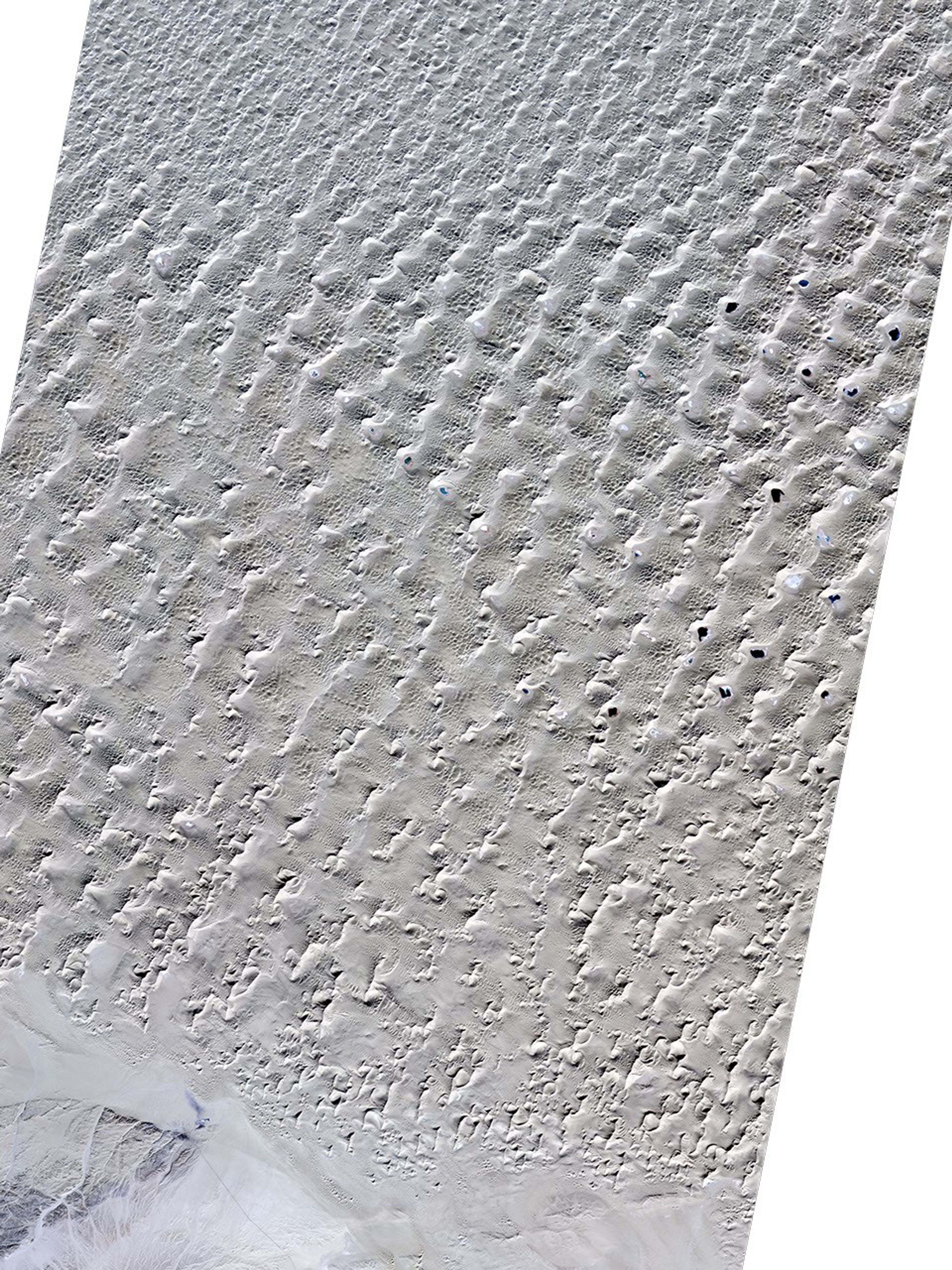 Because of the angle of sunlight, the bottom (gray scale) image may cause an optical illusion known as relief inversion.