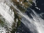 The Moderate Resolution Imaging Spectroradiometer (MODIS) on NASA’s Aqua satellite acquired this image at 2:50 p.m. (3:50 Universal Time) on October 17. Fires are outlined in red; to the east, smoke pollution was a problem in populated coastal communities. The densest plume hangs directly over Sydney, though the brighter white streak is probably a cloud.