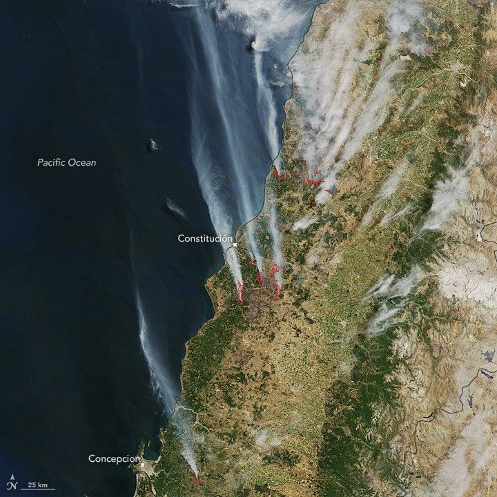 Wildfires have consumed roughly 273,000 hectares (1,060 square miles) and killed at least 10 people in Chile, according to news reports. Some outlets are calling it the worst fire outbreak in the nation’s history.