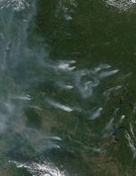 Several large, smoky fires burned in the forests of southeastern Russia when the Moderate Resolution Imaging Spectroradiometer (MODIS) on NASA’s Aqua satellite acquired this image. The fires are marked in red.