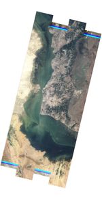 The best way to interpret this picture is to compare it to another ALI image of roughly the same area acquired three days earlier. Almost all of the submerged area in this image was above water on September 15. In this image, only isolated patches northeast of Manchhar Lake poke above the floodwater. Sehwan airport and most of Bobak are underwater.
