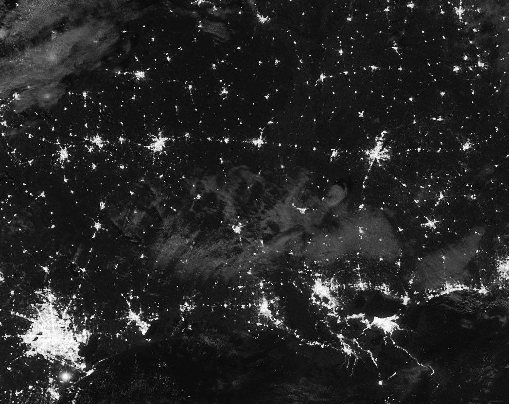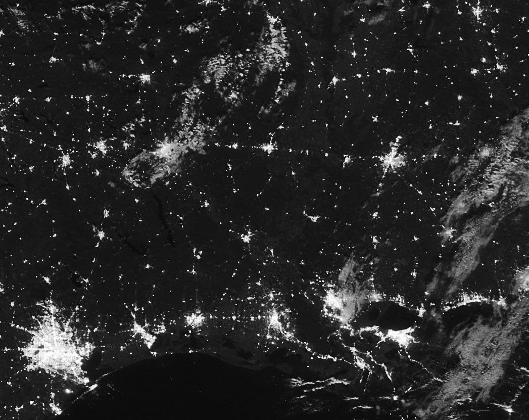 NASA Earth Observatory images by Joshua Stevens , using Landsat data from the U.S. Geological Survey , road data from OpenStreetMap , and VIIRS day-night band data from the Suomi National Polar-orbiting Partnership . Story by Michael Carlowicz .