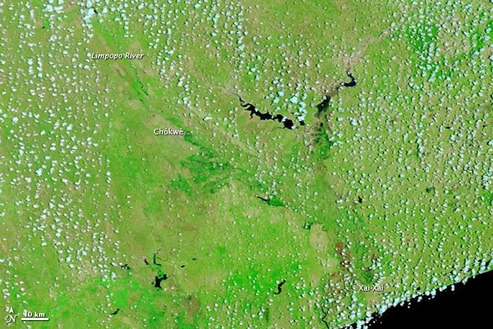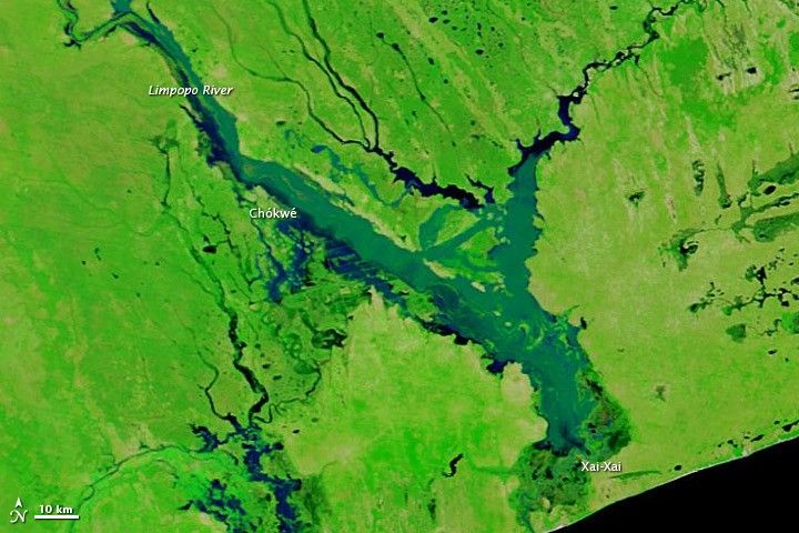 In a little over two weeks, heavy rains transformed the landscape of southern Mozambique. On January 9, 2013, the lower Limpopo River was barely discernible from the sky. By January 25, the river had spilled over its banks, with water spreading more than 10 kilometers (6 miles) across the landscape in places.