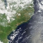 On January 17, 2015, the Moderate Resolution Imaging Spectroradiometer (MODIS) on NASA’s Terra satellite captured the top image, which shows flooding along the Licungo and other rivers in coastal Mozambique. Thick plumes of sediment-rich water are also visible in the Mozambique Channel. Though individual villages are not visible at MODIS’s spatial resolution, floodwaters have inundated dozens of villages. The lower image shows the same area on February 1, 2014.