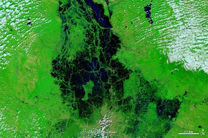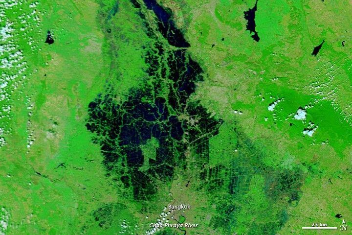 Acquired in early and late November 2011, these images document slowly receding floods around Bangkok, Thailand.