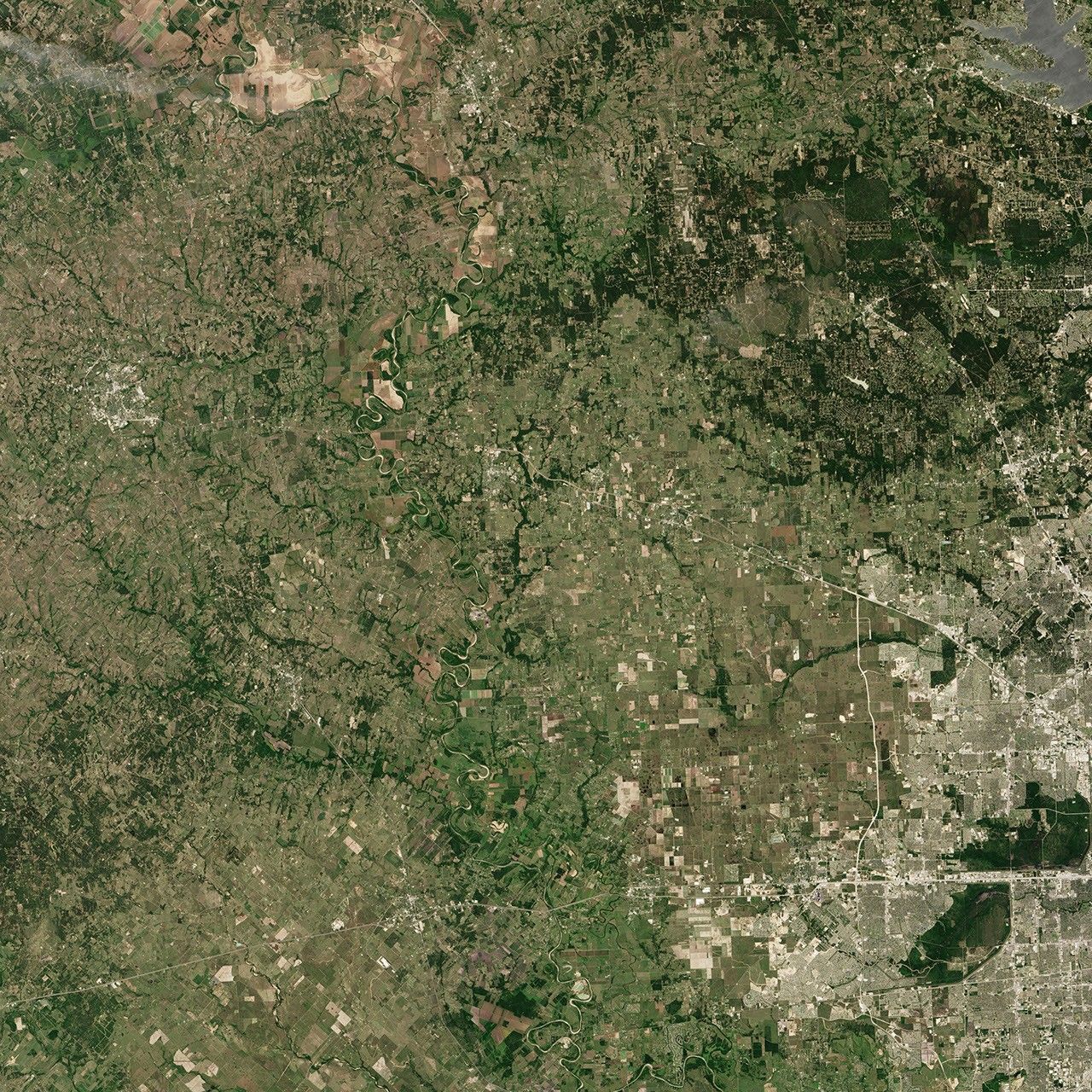 The Operational Land Imager (OLI) on Landsat 8 acquired these images of southeastern Texas on May 28, 2016 (top) and May 4, 2013 (second image). The top image shows flooding along the Brazos River just west of Monaville, while the second image shows the river when it was well within its banks. In 2014, the river nearly ran dry in places due to drought. The images below from the same days show the wider scale of the flooding.