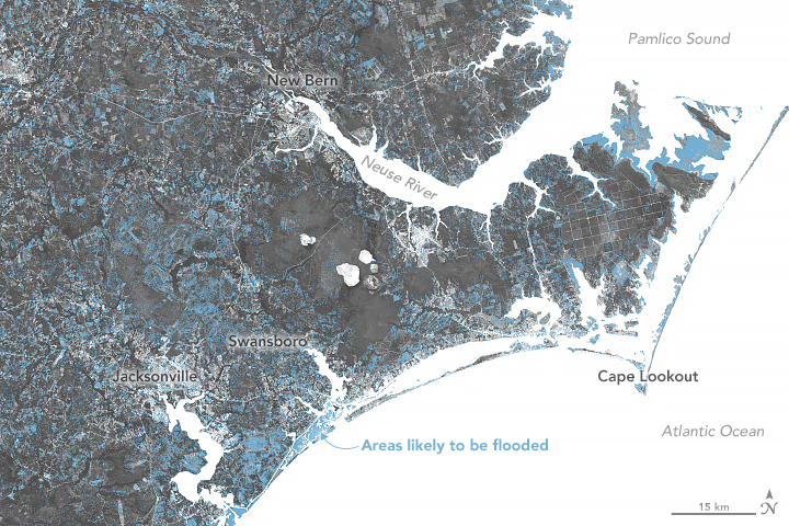 Upon making landfall on the southeastern U.S. coast on September 14, 2018, Hurricane Florence brought strong winds and torrential rains that flooded roads, houses, and rivers to historic levels and left hundreds of thousands of people without power. NASA data and researchers observed and analyzed the event, providing a steady stream of information to the Federal Emergency Management Agency (FEMA) and the National Guard to help assess the hurricane's impact.