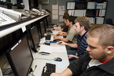 “149.9. You were right, Jamie.” Command and data handling subsystem engineer Jake Simmons does not say this into the official SCAMA, but turns from his station to announce these results to Pawloski. He is referring to the longitude over which the satellite completed its burn, which tells them where the satellite is. “We all guess how close to predicted we are performing,” Pawloski says. It’s not too surprising that the lead engineer came closest. Pawloski has been on Aqua’s flight team since before the satellite launched in 2002.