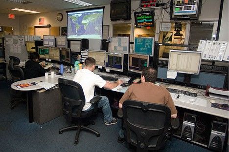 Engineers track the progress of Aqua’s orbital maneuver from the mission control room at NASA’s Goddard Space Flight Center. (Photograph courtesy William Hrybyk, NASA GSFC.)