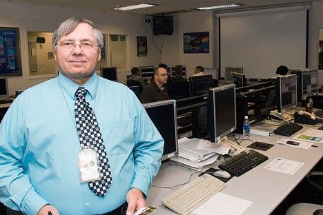 Aqua Mission Director, William Guit, watches the maneuver from Mission Control. (Photograph courtesy William Hrybyk, NASA GSFC.)