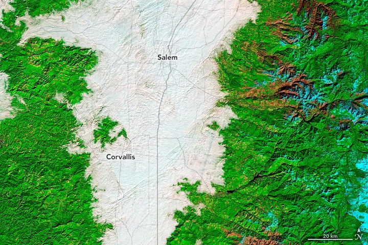Oregon has already seen at least three extended periods of valley fog in 2022, as observed by the Moderate Resolution Imaging Spectroradiometer (MODIS) on NASA’s Terra satellite from February 8-12, January 22-29, and January 14-17.