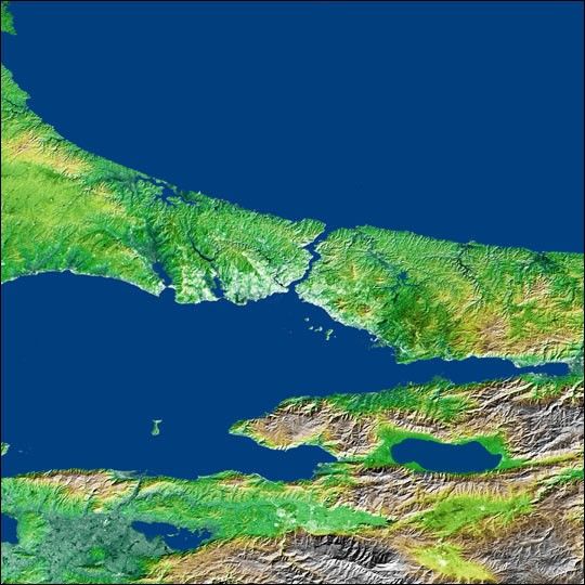 The above image was acquired by the Moderate-Resolution Imaging Spectroradiometer(MODIS) aboard NASA’s Terra satellite. Red = .645µm (red),green = 1.627µm, (shortwave infrared), blue = 2.13µm (shortwave infrared).