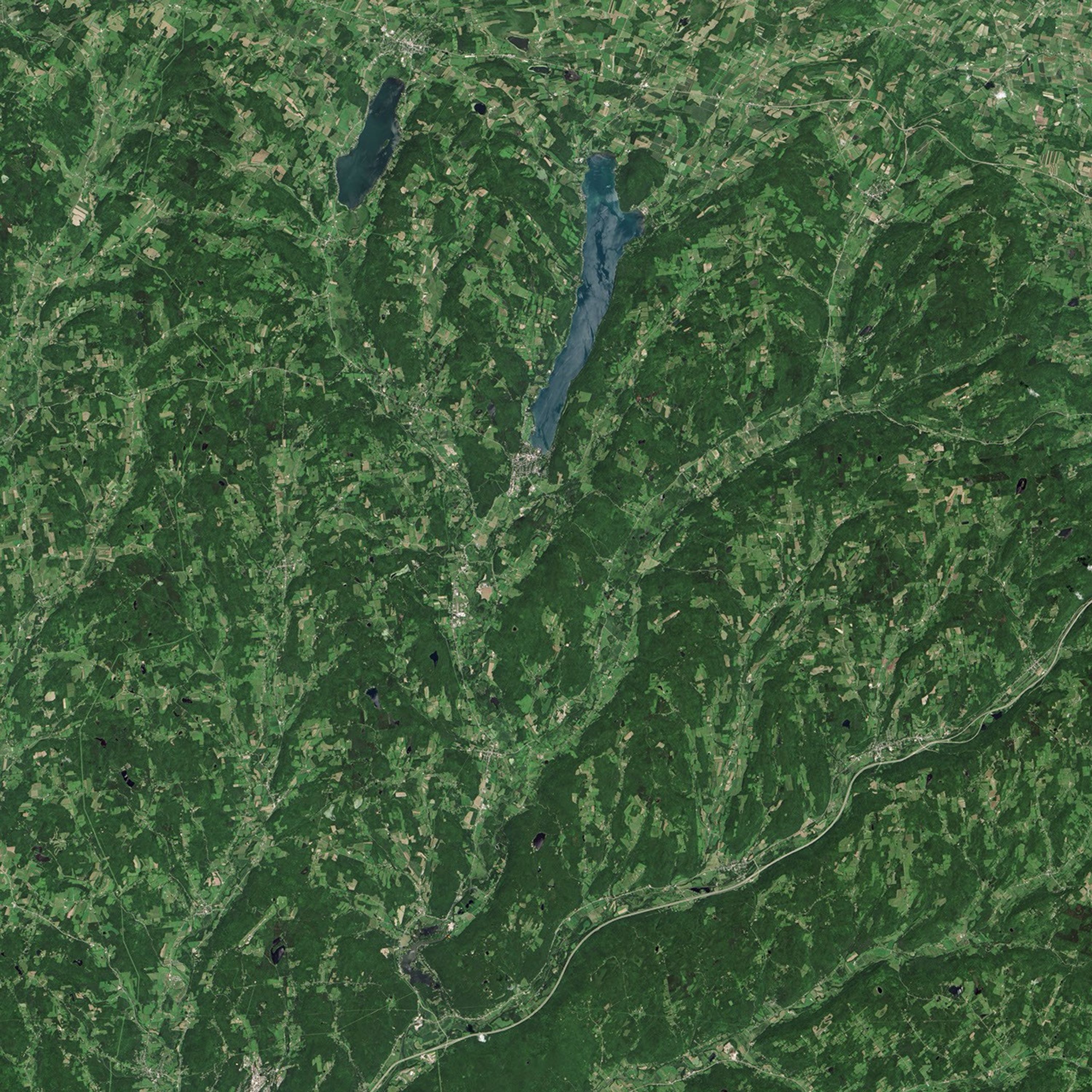 After pooling in the Glimmerglass for a time, a droplet of rain that falls in upstate New York will eventually make its way into a small, winding stream that drains the southern end of the lake. These are the headwaters of the Susquehanna River and the beginning of an epic journey toward the sea. The Susquehanna flows across 464 miles (747 kilometers) and three states—New York, Pennsylvania, and Maryland—before emptying into the Chesapeake Bay and the Atlantic Ocean.