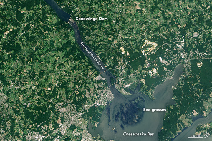 Not far from where the Susquehanna River enters the Bay near Havre de Grace, Maryland, the waters wash over an expanse of underwater grass on the Susquehanna Flats. The flats are prime habitat for birds, fish, and crabs, and the health of the grasses is an indicator of water quality in that part of the Bay. When the water gets too cloudy—because of suspended sediment, excessive nutrients, or algae—the grasses don’t get enough sunlight. When the water is clear, grasses thrive.