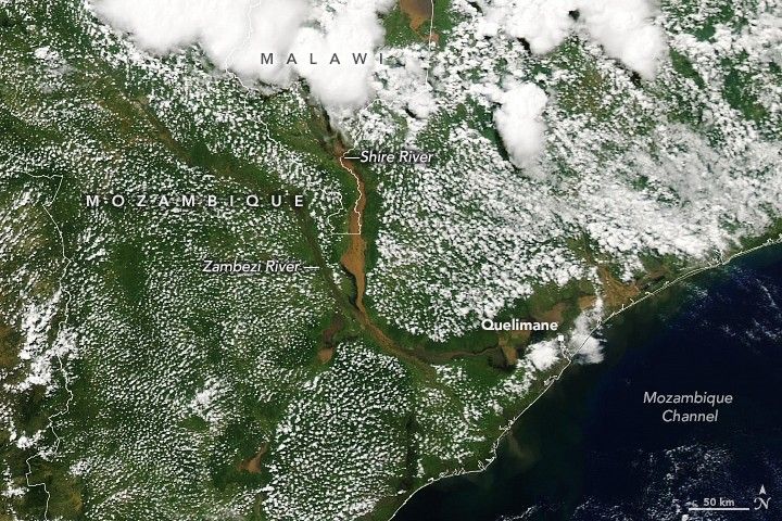 The storm’s slow pace led to torrential rains in which 20 to 67 centimeters (8 to 26 inches) fell over a span of two days in many areas in Mozambique and Malawi. On March 19, 2023, the Moderate Resolution Imaging Spectroradiometer (MODIS) on NASA’s Aqua satellite captured an image (right) that shows the scale of the flooding on the Shire, Zambezi, and Licungo rivers. The other image (left) shows the same area on February 21, 2023, before Freddy arrived. Many of the swollen, flooded rivers appear brown due to water carrying large amounts of suspended sediment.