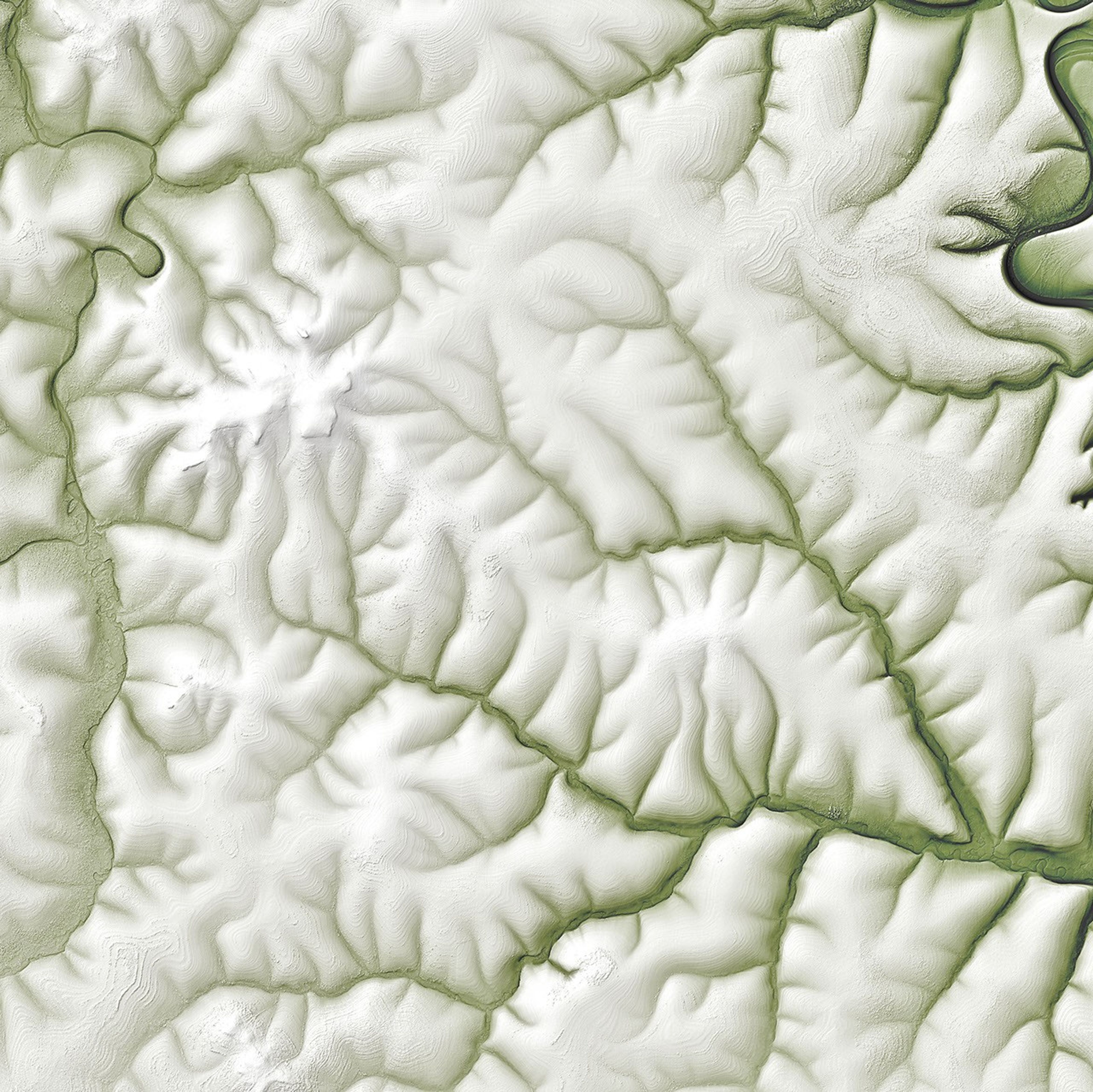 From a geologist’s perspective, the different stripes appear similar to sedimentary rock layers. Thomas Crafford of the U.S. Geological Survey called the pattern “layer cake geology,” where sedimentary rock layers have been exposed and dissected by erosion. As snowmelt or rain travels downhill, pieces of sedimentary rock are chipped away and sent down to the ravines below. Such erosion could cause a step-like pattern that appears as stripes from space similar to a slice of layer cake. This pattern is also referred to as “cliff and bench topography.”