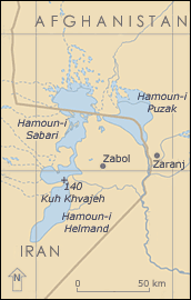 For five millennia, under the banners of nearly a dozen empires, through the preachings of countless religions, and amidst the technological marvels of the modern age, the Hamoun wetlands stood as a major source of food and shelter for the people of Central Asia. Located on the border of present-day Afghanistan and Iran and fed by the Helmand River, the 2,000-square-kilometer (800-square-mile) wetlands formed a true oasis in the middle of hundreds of kilometers of arid plains. The wetlands provided those around them with an abundant source of fish, game, and fresh water for farming. Their dense marshes and clear lakes supported all manner of wildlife from carp to otter to leopard. Their location far from any other substantial body of fresh water made them an ideal stop for migrating birds traveling south to the Indian Ocean.