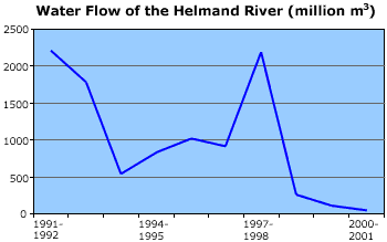 In 2001, the Helmand River at the Afghan-Iran border ran dry, falling by 98 percent from its annual average. (Image courtesy of International Federation of Red Cross and Red Crescent Societies)