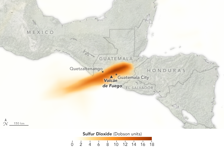 The Guatemalan volcano is at it again, beginning its latest bout of unruly behavior on January 31, 2018. On the next day, the Operational Land Imager (OLI) on Landsat 8 captured these natural-color images of the eruption. Ash in a volcanic plume typically appears brown or gray, while steam appears white. You can see a wider view of the volcano here. Fuego is located about 70 kilometers (40 miles) west of Guatemala City.