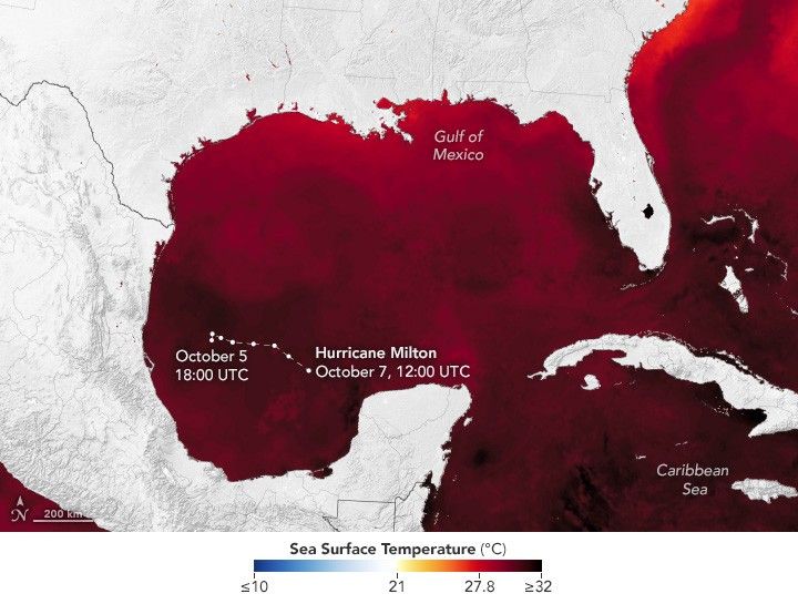 - NASA SPoRT, via X (2024, October 7) Sea surface temperatures above 85°F in the Gulf of Mexico have fueled #HurricaneMilton’s rapid intensification. Accessed October 8, 2024.